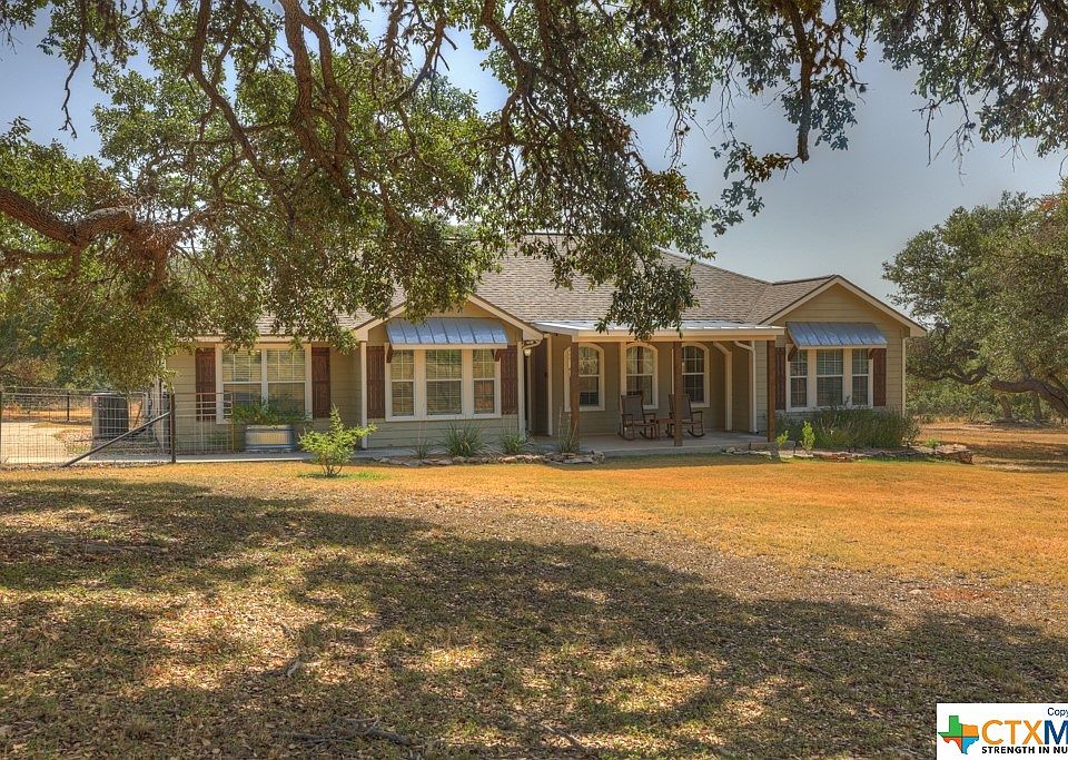 This beautiful custom country home sits on 3 acres with several giant Oak trees and an amazing backyard oasis. A Privacy Gate opens to a double carport, and detached game room. Completely fenced and cross fenced, this beautiful, country styled home has a vaulted ceiling and fire place in the open living room. There's an office space off the living area, as well as a gorgeous formal dining room. Another dining area opens to kitchen with a large pantry and stainless appliances. The Master bedroom comes with a high tray ceiling and large windows. The Master Bath open with double vanities, large shower, tub, and master walk in closet. Two bedrooms share a 2nd bathroom and walk in closet in the hallway. Out the back door, a new covered back porch has been added with a cedar beam and metal gazebo. A covered hot tub completes this relaxing backyard. A new water heater and roof were installed in 2022, and a new HVAC system in 2023. Most of the furniture and decorations come with the house.