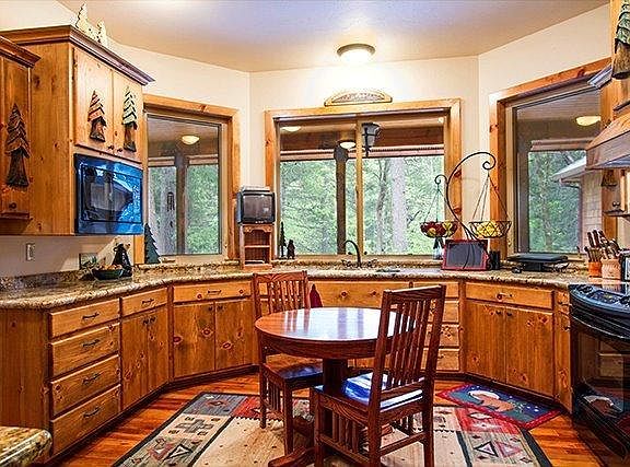 Ultimate Lodge Styled Custom Home in the Woods. Located on 18+ acres of lush majestic evergreens, shop/guest, year round creek. Builder's personal home built in 2010 with 2 bedrooms, 1.5 baths, approx. 2402 Sf. Builder has ideas to make 3 bedrooms and adding full 2nd bath. Living room w/vaulted ceilings & cultured stone woodstove hearth, 2- heat pumps, custom doors, formal dining, kitchen has slab granite counters & pantry, knotty pine cabinets, wood wrapped windows, 10' ceilings, master bedroom w/walk-in closet, master bath w/soaking tub, slab granite counters, wheel chair accessible shower, built-in desk in 2nd bedroom, large covered deck, log post accents, shingle siding, 1250sf shop/guest house, 18x18 pole barn, raised beds in garden, beautiful wooded setting in excellent subdivision of high end homes. All information is deemed reliable but not verified, anyone considering the purchase of this property should perform their own investigation into use and condition of property.
