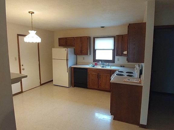 Good family home. 2 large bedrooms upstairs with full bath. Half bath on main floor next to kitchen/dining. One finished bonus room downstairs with closet(could be used for den, office, or bedroom but has no window). The other half of the basement is unfinished which could be used for storage or play area. Stove, fridge, and dishwasher supplied, as well as a washer and drier. home has private driveway parking and out door patio space. First months rent, last months rent, and security deposit required. Trash and sewage included in rent, all other utilities paid by tenant. NO cats allowed. NO Smoking. All applicants must complete background check and credit score check