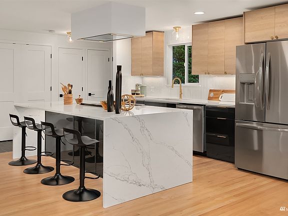 Mid-Century charm meets modern in this rambler in the heart of Magnolia. Prime location across from Discovery Park and a minutes stroll to the Ballard Locks. The kitchen comes complete with an eight foot long waterfall island that opens up to the living and dining room, an entertainer's dream. The bathrooms are adorned with designer tile throughout. Enjoy relaxing in either of the patios in your fully fenced yard. The rejuvenation of the home was designed to live as good as it looks. MUST SEE!