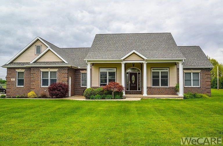 Gorgeous Elida ranch style, brick home, sits on 4.89 acres, Spacious home, 4000+ SF, loaded with storage, Home features 3BR w/each own full bath, walk-in closets. Potential for 4-5 BRs. Open floor plan, office w/french door off foyer, beautiful great room features soaring ceilings, gas F/P. Gourmet kitchen w/custom cabinetry, granite countertops, s/s appliances, new refrigerator (2020). Full bsmt w/tornado room, impressive man's cave features Epson home cinema projector w/screen, wet bar, surround sound, whole house audio, pool table. New deck overlooks 3/4 acre stocked pond w/zip line.