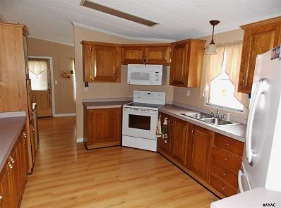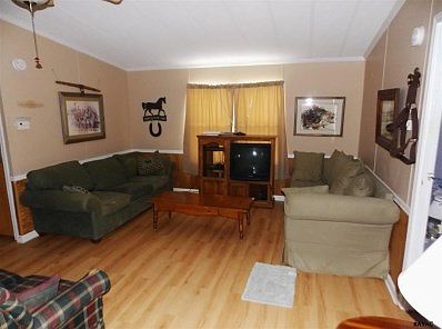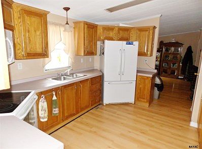 1994 Pine Grove Double Wide in Excellent Condition Featuring Open Floor Plan, Three Bedrooms, Two Full Baths, Huge Kitchen with Lots of Cabinets, Separate Dining Room, Central A/C, Laundry Room, Nice Big Deck, Shed with Electric and Parking for Two Cars. Quiet - Located on Edge of Park Across from Farmland! Water/Sewer/Trash Included in Lot Rent.