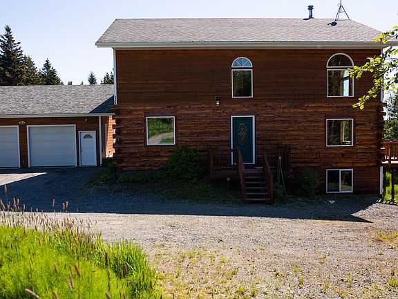 Inviting log home perfect for family gatherings & entertaining. The home is located on 2.26 private acres w/ peekaboo views of the bay. Enjoy your morning coffee on the wrap around deck while watching the baby moose play in the pond. Home includes an oversized garage & carport for all your toys. At $119 a square foot, this home is a steal! Please see attached docs for list of many features.