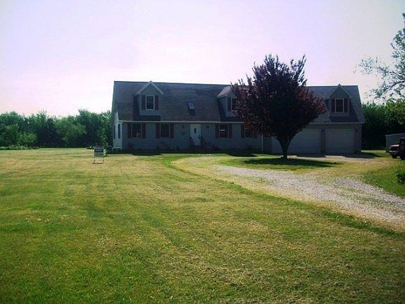 Across from Ft Daniel Conservation Area. Cape Cod on over 2 AC in Mt Zion Schools! Family friendly layout. Large country kitchen with center island and plenty of room for family table. Gorgeous master suite! Walk-in closet, bath has cathedral ceiling and skylight, small balcony! 17x20 wood deck. NEW 3 car attached garage with 32x13 floored loft area. House is off the road about 300' for private getaway. Outbuilding of no value-needs work.