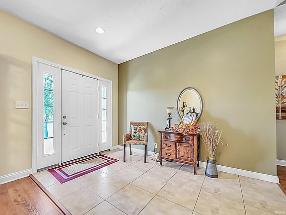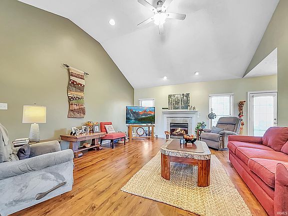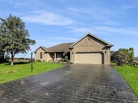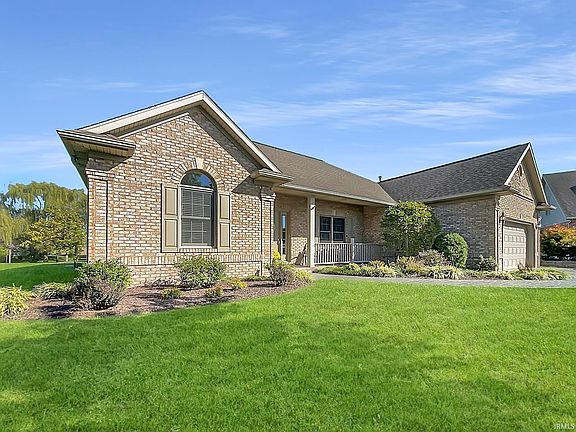 Discover this charming 3-bedroom, 2-bath home nestled on over half an acre in the desirable Keystone Subdivision! Built by Choice Homes in 2004, this property showcases a thoughtful split-bedroom design and stunning features throughout. The vaulted great room welcomes you with gorgeous hardwood flooring and a cozy gas fireplace, seamlessly flowing into the dining room and foyer, creating an inviting floor plan perfect for gatherings. The kitchen is a chef's dream, complete with castled cabinetry, ample storage and counter space, a breakfast bar and a breakfast nook designed for easy entertaining. The main bedroom suite is a true retreat, offering serene lake views, a tray ceiling, a walk-in closet, double sinks, a separate walk-in shower and a garden whirlpool tub. Two spacious additional bedrooms share a full bathroom, perfect for family or guests. Convenience meets functionalilty with a laundry room that includes shelving, sink, plus the 2.5-car attached garage offers plenty of room for parking, shelving for additional storage, pull-down attic, and a durable epoxy coated floor for easy maintenance. Step outside to the custom stomped driveway and walkway adding a unique touch of character to the home's curb appeal. Relax on the inviting porch or entertain on the back patio while enjoying the beautifully landscaped yard and breathtaking lake views. The backyard is your personal oasis complete with flowers, bird house, a charming bridge, and stunning scenery. This home has it all-don't miss your chance to make it yours.
