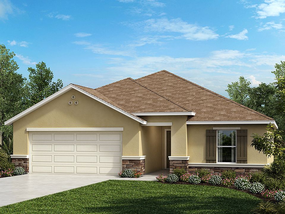 This single-story home features a beautiful stone veneer exterior, a popular open concept floor plan, and a covered patio that's perfect for entertaining friends and family. This ENERGY STAR® certified home comes equipped with low-E windows, 9-ft. 4-in. ceilings, and recessed lighting throughout. Upon entering the kitchen, you will find 36-in. upper cabinets painted white, along with Whirlpool® appliances in stainless steel. Enjoy stunning tile flooring throughout the home, excluding the bedrooms which feature lush carpeting.