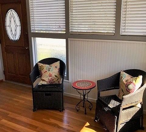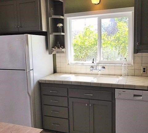 This charming home has kept alot of its original character.The hardwood floors, arched door way, built in nooks are original in keeping with the style of this 1957 home. It was lovingly updated 2 years ago with new kitchen cabinets, new oven/range, new micro/hood, new bathroom vanity, wainscot, new dual pane retrofit windows, new garage door opener and new interior and exterior paint. The back yard has been completely remodeled with a rock retaining wall, automatic sprinkler system, privacy fence with gates and locks, raised vegetable planters, nice lawn area and mature fruit trees. Addition of a guest house with separate electric sub-meter, approx 500 sq. of living space ft. 1 bed, 1 bath, kitchen/dining and living room with lots of storage cabinetry. Separate parking area, ceiling fans, oven/range (full size), apartment size refrigerator, micro/hood, cabinets set up for future dishwasher, wired for phone and cable,