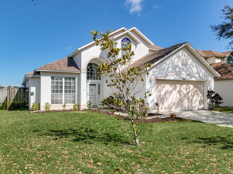 Spectacular lake view possible. There is currently a 6 ft fence blocking the beautiful view. Great home with master bedroom and bathroom downstairs. Half bath also downstairs. Two bedrooms, bathroom plus loft area on second floor. Super cute.Roof 4-5 years old. New a/c. All brand new stainless kitchen appliances. Majority of flooring is wood laminate. Upstairs is carpet. Lovely large Backyard is fully fenced. Lovely large and fully screened porch under roof. Centrally located Pebble Creek subdivision. Quiet well established neighborhood. Close to PAFB, schools, I-95, hospitals, excellent shopping and only minutes to the beach.