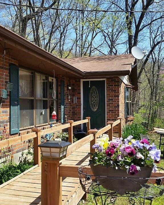As IS. Will not provide any Inspections/ occupancy or any repairs. Inspections are informational purposes only. Looking for privacy? Set off the road and want to be secluded on your own 1.66 acres? Close to town and Hwys MM and 30? You will not want to miss this opportunity! Bring your Ideas and be ready to make it your own oasis. No Steps here, MFL too! Beautiful views over looking red buds when they bloom, and a Gazebo with water fall all tucked into this ledge. Open floor plan includes skylights,some stain glass lighting,stain glass door, Laminate flooring, and Heater/Ac Heat Pump just replaced 2 yrs ago. Lots of cabinets in kitchen with breakfast bar. Large dinning area! See through fireplace to enjoy in living room to Master too! Both bedrooms have walk in closets. Lots of storage in garage/laundry room. Price reflects for some TLC. Includes washer/dryer. Confirmed appointment before driving up drive! Microwave not working/Seller is replacing a few of stain glass fixtures.