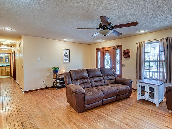 There is no better opportunity to own your own hobby farm than this and I might add that the seller's are motivated SO ACT QUICK! Situated on 12.7 acres with two stocked ponds, chicken co-op, multiple fenced in areas and cross fenced areas, a Creek and 2 garages you will have everything you need! To top it all off, you don't even have to drive on gravel to get there! With 4 bedrooms and 3 full baths this home boasts plenty of living space and entertainment space. You will love the cozy living room with fireplace that walks into the open concept kitchen and dining area with bar seating! Also on the main level, you will find 3 bedrooms, one of which is a nice large master bedroom with an attached master bath. The master suite also has doors that walk out to the covered back deck that outlooks the beautiful, serene timbered backyard. On the lower level of the home you will find a non-conforming bedroom, a large laundry room with plenty of cabinets for storage and another full bath. The walk-out basement will feel like a whole other home featuring a kitchenette area and two additional large living spaces. A bonus feature you will find in the basement is a safe room under the front porch, which also doubles as useful storage space. You can rest easy knowing many of the big-ticket mechanical items have been taken care of at this property such as HVAC and water heater (3-4 years) well pump (1-2 years) and sump pump (3 years). You will also love the metal roof and multiple garages that this home has to offer! You better act fast because everyone’s dream is to have their own hobby farm, make it your dream come true before anyone does!