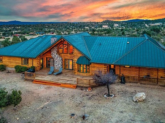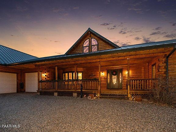 Welcome to this beautiful log cabin situated on 10 acres in Williamson Valley featuring 4 bedrooms, 3 bathrooms, 3-car garage, and attached workshop! This spacious 3,058 SqFt home offers an open kitchen concept with a formal dining room, beamed ceilings, and a floor to ceiling fireplace that carries into the back patio. Each bedroom features very large walk-in closets and views from every window. The large eat-in kitchen has two ovens, a separate island with an eat-in peninsula, and a secondary pantry off the formal dining room. The additional walk-in pantry sits across the walk-in laundry room with utility sink and built-in cabinetry. Enjoy the comfort of the radiant floor heating along with the stunning stone fireplace. You will love the attached 1,072 sqft workshop.