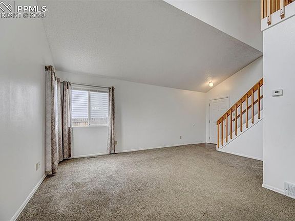 Welcome Home. From the entrance, you're greeted in the split level home with high vaulted ceilings, and an open concept living space as you enter the living with its new carpet, dining area and kitchen. This floor also include a 1/2 bath, and garage access. Next, make your way upstairs to enjoy the work space with views of pikes peak, the owners bedroom, complete with a conjoining access to the upstair full bath, and two additional bedrooms completing the upper level. Finally, make your way downstairs to the finished basement where you will find a final bathroom. ?As you make your way to the back yard, you are able to enjoy a gorgeous mountain sunset with unobstructed views, and no immediate back neighbors. With its proximity to FT. Carson, CM Air station, I-25, Academy Blvd., and the Powers Corridor for you to enjoy shopping, restaurants, and a movie theater, this beaut won't last long! Schedule your showing today.