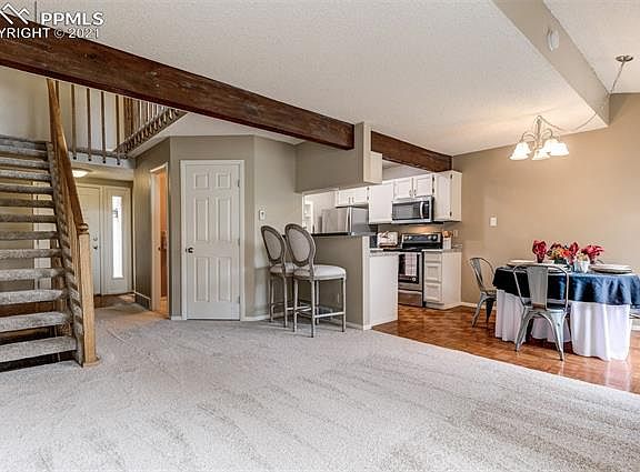 Adorable Townhome, Nicely Updated and Centrally Located In A Quiet, Well Maintained Community...Inside, You're Greeted By A Bright & Open Floor Plan And An Inviting Entry, A Generous Great Room That Opens Into The Walk Out Dining Room, And Vaulted Ceiling With An Attractive Wood Accent Beam...The Charming Kitchen Features Brand New Stainless Appliances, New Counters, And A Cozy Breakfast Bar For Quick Bites Or Midnight Snacks...Upstairs, The Oversized Master Bedroom Features A Generous Walk-In Closet, An Attached Bath, And Is Located Just Down The Hall From The Guest Bedroom...The Laundry Is Conveniently Located Upstairs Too, Along With A Versatile Loft; Perfect For An Office, Study, Or Just A Great Place To Relax And Unwind...The Expansive, Unfinished Basement Provides Plenty Of Storage, or Can Be Repurposed With A 3rd Bedroom And Family Room...Other Features Of This Beautiful Property Include Central Air Conditioning, An Attached One Car Garage, Private Driveway, A Private Back Patio With A Park Like Setting That Abuts To Otero Park, A 6 Acre Park With A Walking Trail...Located In The Desirable Castlepoint Community Centrally Located and Nestled Between The Powers Corridor And Academy Blvd With Easy Access To Shopping, Entertainment, Restaurants, And A Short Commute To All Military Bases...Well Managed Community With Stucco Exteriors. Quiet, Affordable, And Nicely Updated! Don't Miss This Opportunity!