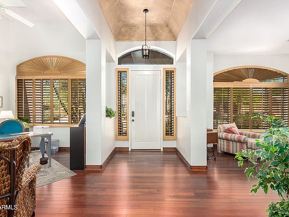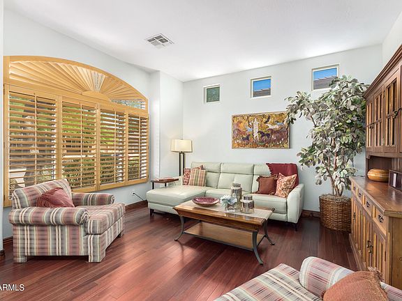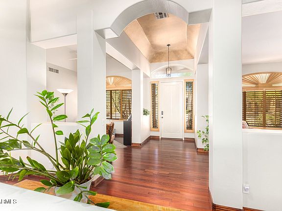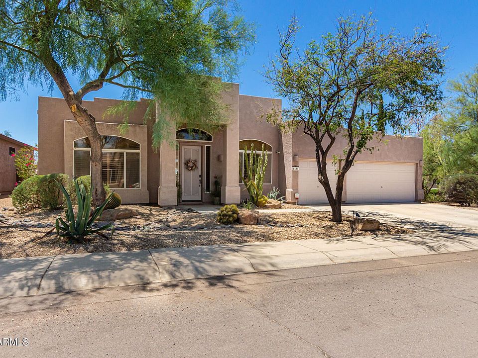Wow! Spectacular property! Formal living and dining rooms with wood floors & architectural details flow into a huge family room, open kitchen & breakfast area. Soaring ceilings & lots of light. Stone surround gas fireplace and entertainment wall. Slab Granite counters & breakfast bar on huge island, perfect for entertaining. Walk in pantry in Chefs kitchen. Unique floorplan has 3 separate bedroom areas. Main bedroom has luxurious bath & huge closet. Another bed & bath off kitchen. Plus 2 other bedrooms with a Jack & Jill bath. Resort like back yard has amazing Desert & Sunset views! Fabulous lagoon pool. Two different paver patio areas & a Built in BBQ. Plus great area for raised gardens or playground. Convenient to shopping, dining, everything the Desert Ridge area has to offer. Come see