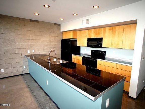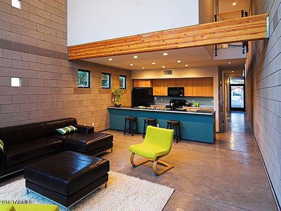 Gated Community. Georgeous Contempory living, this spacious 3 bedroom 2 bath Loft with washer/dryer included. One bedroom and full bathroom is downstairs and other 2 bedrooms and bathroom upstairs. Open, sleek kitchen with all appliances. Great room with natural lighting. Front courtyard, back covered patio and fenced yard. Convenient to downtown, U Arizona, shopping, dining, hospital, and more.