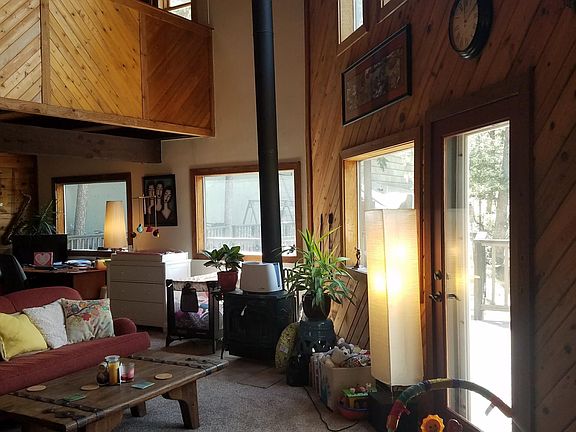 Gorgeous house with beautiful, high ceilings and large, light-filled windows. Updated kitchen on the main floor with granite countertops and newer appliances. The lofted master bedroom has a large walk-in closet and attached bathroom with a jacuzzi tub, two sinks, and a shower. The main level has a mudroom, half bath, modern kitchen, living room, wood stove and an office. You can walk out two different ways to a beautiful deck amongst the trees. The lower level consists of a large family room with huge windows, an updated kitchenette, a second bedroom, a 3/4 bathroom and its own deck and entrance. There's also a large insulated storage room under that. There is a three car carport and a large shed along the street. This is a truly unique home in a wonderful location; a very short walk to downtown Evergreen shopping and dining, Evergreen lake, and miles of open space with wonderful hiking and mountain biking. Dogs are okay with a $50 per month extra pet fee. There is a fence around the half acre property but it is in complete disrepair and would need to be fixed up. This home is available for rent on September 1st. If you desire a quiet and private setting in the forest with a downtown location, this could be the place for you. Thanks. Renter pays for all utilities. First and last months rent as well as a security deposit are also required. No smoking allowed.