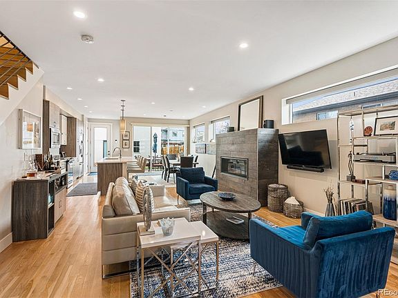 Welcome to your new 3-bedroom, 4-bathroom duplex nestled in the coveted and highly-walkable Berkeley Park neighborhood. Boasting modern elegance and spacious living this home offers a seamless blend of comfort and style. Step inside to discover a thoughtfully-designed living space that combines sleek finishes with the comforts of home. The spacious open-plan layout is perfect for entertaining guests in either the living room or the adjacent dining area, with the large fireplace providing warmth throughout. The sunny home office offers dedicated space to work, while the gourmet kitchen features quartz countertops with two ovens and a natural-gas powered stove to meet every cooking need. Walk outside the back door to a fully fenced and landscaped backyard leading to a 2-car garage with additional storage. Upstairs, retreat to the master suite with an expansive bathroom and oversized shower with dual showerheads. Additional bedrooms offer versatility for guests or home office space, including patio access to enjoy the morning sun. The third level boasts a spacious recreation area with a wet bar and wine refrigerator. Sliding patio doors lead to an enormous west-facing deck with clear mountain and sunset views, the perfect setting to dine outdoors or gather around the fire pit. With convenient and walkable access to Tennyson Street’s restaurants, breweries and shops, this home is also just ½ block from Berkeley Park’s tennis courts and recreational trails. This duplex presents an exceptional opportunity for those seeking upscale urban living. Don’t miss out on making this your dream home!