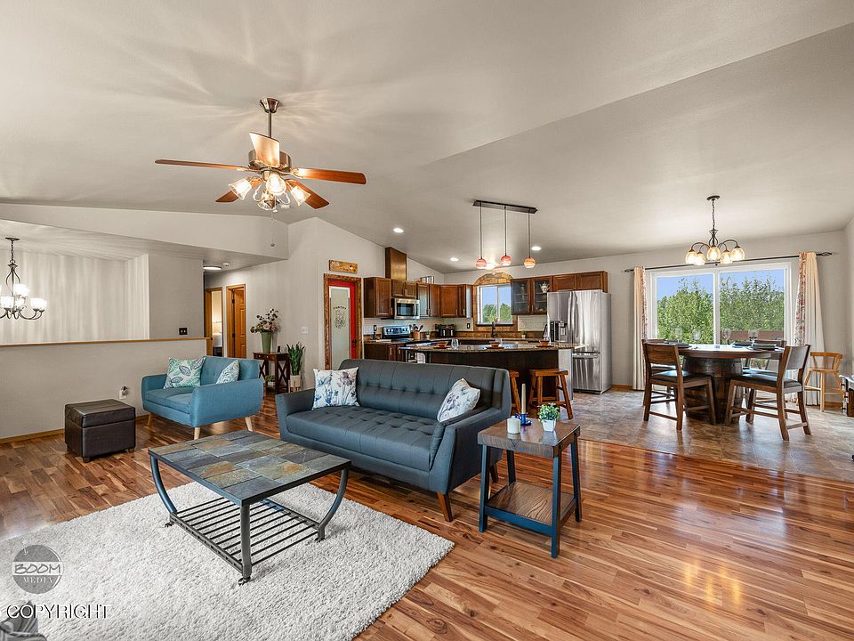 This lovely home has a split floor plan w/ a primary en-suite & 2 bed/2 baths. Downstairs is an add'l living space, 2 bed/1ba. The bottom level is on grade. 3 car garage & 2900 SF in main home. Huge great room w/vaulted ceilings. Vaulted ceiling in the primary. Lovely kitchen w/a pantry. Mountain views from the living area & the primary. Huge multi-leveled deck out back. Bonus room upstairs.An attached yet detached MIL, separated by 4 garage bays, this ranch style 1100 SF apartment that has a private deck and separate garage. Ideal for multifamily situations or anyone wanting additional income. The entire backyard is fenced (1/2 of an acre or so) with a nice garden shed and mostly cleared but with trees for privacy on one side. Lovely for pets or other desired animals. Each unit has separate electric & gas meters as well as separate septic systems. Close to Hatcher Pass and Skeetawk as well as 10 min from the hospital, this is a great living AND income opportunity for those looking for one! This additional residence could also be used as a business space, as a salon or for art. Both homes have high-end finishes and open floor plans with vaulted ceilings. In the primary home lovely new carpet was installed on the and downstairs bedrooms.