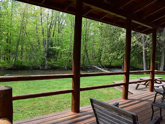 CHECK OUT our NEW 3D virtual tour of this property (click on virtual tour). Breathtaking 5 bedroom 2 bath Cedar Lodge home located on Deer Creek between East Jordan and Boyne City. Home has a timeless spacious feel as soon as you pull in the drive that steps you back in time. The Cedar Lodge cabin resides on a hundred and eighty beautiful acres of diverse Woodlands, which crosses the river known as Deer Creek. The riverfront is filled with brook trout and endless amounts of wildlife along the 3,576' of riverfront. The enjoyment opportunities on this parcel are nearly impossible to beat, whether is it hunting, fishing or just hiking around. Plenty of space for the entire family this deer season and trout season. This property is what vacations are made of, every outdoors man, Hunter and trout fishing fanatic has been waiting for their entire lives. With access from both the North and South boundary lines this parcel is easily accessible and has its own trail system for your ATVs, hiking, snow showing adventures.