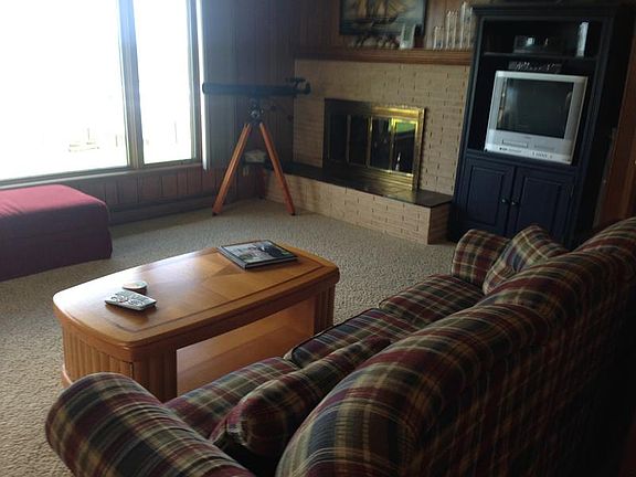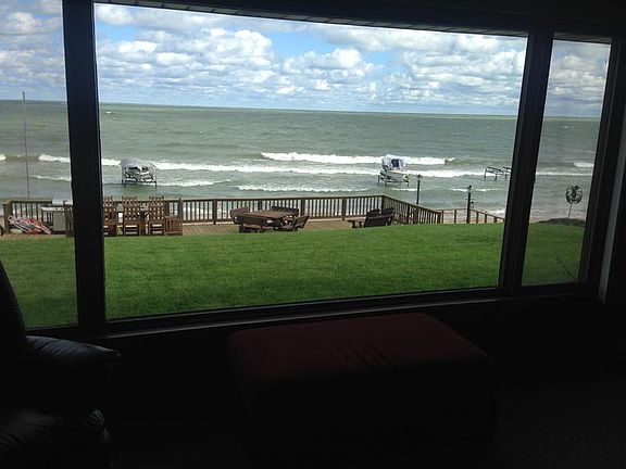 This wonderful Year Around Home has a magnificent Panoramic View from most rooms. It has an Open & Airy concept, spacious Kitchen with Table Space, Large Living Room with Brick Fireplace & Raised Hearth, 3 Bdrs., 2 Baths, 1st Floor Laundry, Cement Porch which is Covered for those cooler evenings to cook-out on the Grill, Attached Garage for your extra toys!! Plus a beautiful Raised Wooden Deck with plenty of room for Parties down on the Beach!! All appliances included in sale!!