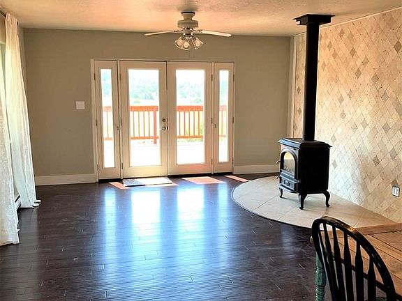 Wonderful 3 bedroom 2 bath home with fantastic views of the surrounding mountains. New Roof and new roof mount Swamp cooler. The kitchen has granite counter tops, a built in cutting board and white cabinets with a separate pantry. The huge living room has full glass doors that open out onto a large deck with a hot tub to enjoy those evenings looking at the stars. The master bedroom has a spacious bath with walk-in shower and private dressing area. Downstairs you will find an entertainment area for all to enjoy. There is a bonus hobby room with new carpet and drywall currently used as a workout area. There is a small greenhouse out back for the gardener. This property is fenced and will allow for horses. Use your imagination, a Guest House for visitors or an Vacation Rental or your personal home. There is no well on this property. There are two cisterns that are combined that hold approximately 3200 Gallons of water.