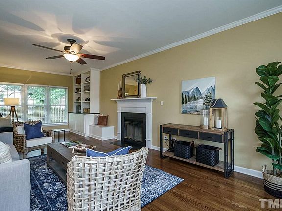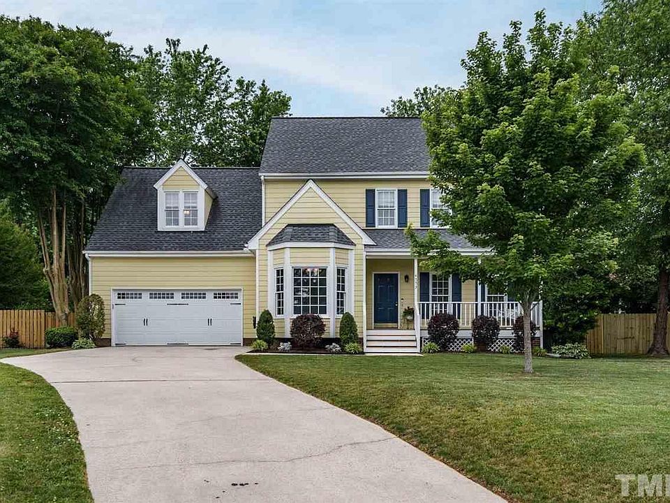 WELCOME HOME! Beautiful Site Finished Hardwood Floors & 9' Ceilings, Wood Burning FP, Updated Kitchen w/ Granite Counters, Gas Range & Island. Separate Dining Room or Office/Flex. 2nd Floor Owner's Suite w/ Walk-in Closet (w/ built-in safe) & Renovated Bath: Dual Vanity with Granite Top, Subway Tile, New Glass Shower Surround & Tile Floors. Bonus. Two Car Garage. Stairs to 23.5x33.4 Floored Attic. Large, Private Fenced Back Yard. Short Walk to Community Pool. Convenient to Downtown Raleigh, I-40 & I-540.