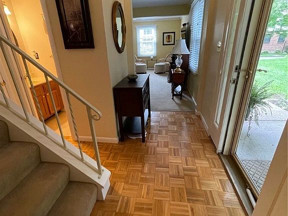 Located in Hampton Twp, near North Park, two story end unit townhouse, three bedrooms, 2.5 bath nice side yard with large backyard deck. Powder room just off the entry with pocket door and ceramic flooring. The foyer and kitchen boast beautiful parquet wood flooring connected by hardwood floor in dining room with lots of natural light peering in the sliding glass door from the deck. Master bath with sky light. One car garage is close to laundry room with nice storage and convenient to L shaped kitchen. Clean and bright! Make this your new home! Still time to enjoy the summer.
