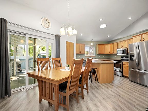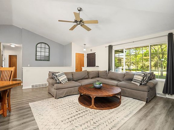 Meticulously maintained ranch home with open concept. Step inside to large living room with new LVT flooring. Kitchen boasts stainless steel appliances, center island, pantry and dining area overlooking patio door to deck. Primary bedroom features double closets and en suite bathroom. Convenient first floor laundry. Two additional bedrooms and full bath complete the main floor. Head downstairs to find theater room w/ projector, 4th bedroom, updated full bath w/ dual vanity and tile floors. Flex room or future WIC off the full BA. Attached garage w/ newer garage door. Fully fenced spacious backyard. Don't miss out on this move in ready ranch situated in a quiet neighborhood. Showings start 5/20. Offers being presented 5/24 at 11AM.