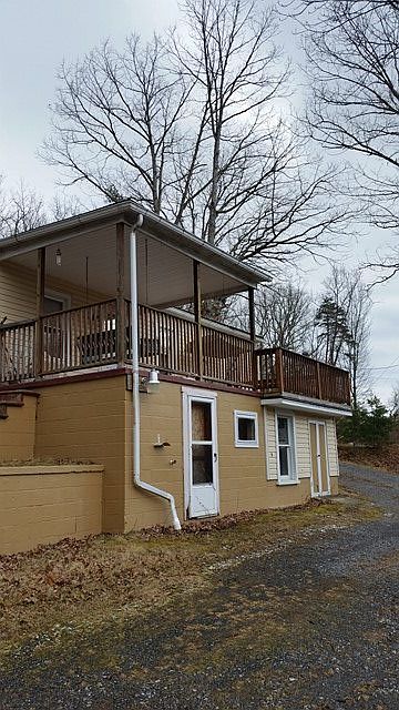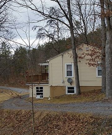 2 bedroom, 1 bath , kitchen, dining room, large living room with full basement and 1 car garage, situated on 5.38 acres of mostly wooded land. Home is on state maintained road.
