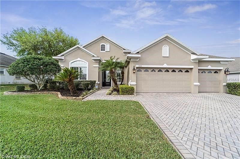 Don't miss seeing this Move-in ready Gorgeous 4 bedroom, 3bath, Single Story home with an over-sized 3 car garage and Brick Paver Driveway with pavers leading to the front door. Located in the desirable community of Rock Springs Ridge! This home has a fantastic open floor plan great for family gatherings and entertaining guest. As you enter the foyer you will see the spacious living room to your left and grand formal dining room to the right both areas have crown molding. Dining room, Livingroom, and all four bedrooms have beautiful Cherry Hardwood floors; all other areas have tile floors, NO CARPET. The large and very spacious kitchen has a breakfast bar with updated Stonework, Cherry cabinets an Island, and Granite Countertops plus a Cherry Butler pantry. The breakfast area has a newly built-in seating area to enjoy family meals and has extra built-in storage. The Large light & bright master bedroom has a separate sitting area with a view of green space and no rear neighbors, his and her walk-in closets. Master bath has separate sink areas, a jetted garden tub, and a separate shower. Updates include (newer light fixtures kitchen, dining, foyer, and exterior garage coach lights, screened in lanai, upgraded baseboards in main areas to 5.25", Newer dishwasher, Wainscotting in office, and in the formal living room added chair rail.) Make an appointment to see this well maintained and beautiful home today