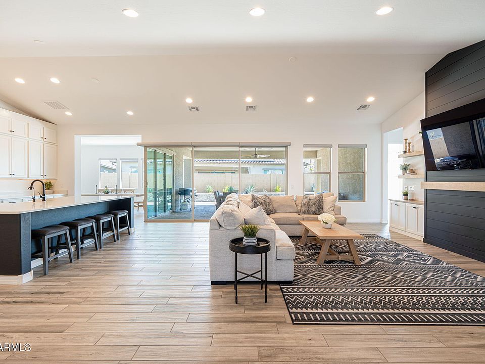 Better than new!! Beautifully upgraded & move-in ready, this 3,200+ sq ft single-story stunner in Eastmark offers 3 spacious bedrooms, 3.5 baths, an office & large flex/teen room. Perfectly situated on a premium corner lot w/ no two-story neighbors & a community park across the street, this home features a welcoming courtyard entry, soaring 10-12 ft ceilings, & an open layout filled w/ natural light. The chef's kitchen is a dream w/ Monogram appliances, 36'' gas cooktop, dual dishwashers, oversized island, quartz countertops, custom soft-close cabinetry, farmhouse sink, walk-in & butler's pantries, hidden outlets & under-cabinet lighting. The elegant primary ensuite is spa-like w/ an oversized tiled walk-in shower, double vanities & closet w/ direct laundry access. Additional upgrades include custom built-ins, motorized window shades, wood plank tile throughout (no carpet), modern trim & finishes & two 2-car garages (1 w/ mini-split A/C, both w/epoxied flooring). Step outside to your own private resort on a 14,500+ sf lotcomplete w/ an expansive covered patio, outdoor kitchen, built-in firepit w/ seating, pavers, turf, citrus trees & garden area. Energy-efficient features include dual-zone HVAC, whole-house filtration, RO system, plumbed for soft water, & w/fiber-wired internet. Eastmark residents enjoy world-class amenities including pools, splash pads, parks, skate park, Steadfast Coffee, The Mark clubhouse, community events & more. No expense was sparedthis was built as a "forever home" but work is taking the seller out of state. Truly a rare opportunity!