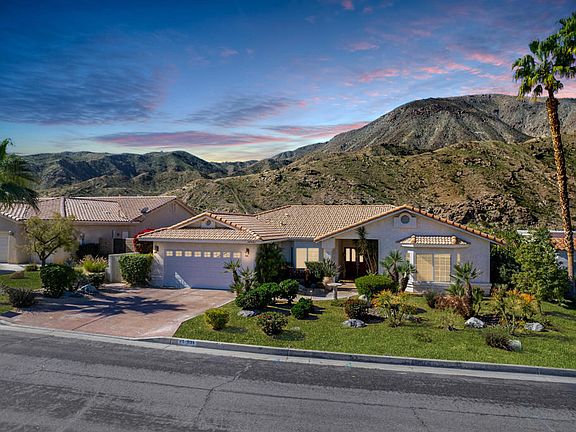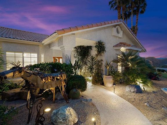 Views! Views! Views! Location! Location! Location! Walk to El Paseo and have an up close unobstructed spectacular mountain views! No HOA! This contemporary home offers Desert outdoor living at its best! Huge outdoor kitchen with misters, pebble tec pool and spa, putting green, landscape lighting. Huge eat in kitchen with breakfast bar, 3 bedrooms, 3 bathrooms, large laundry room, formal dining room, step down living room, gas fireplace, built in bar. Primary suite opens to the pool and spa, has a large soaking tub, shower, walk in closet and private toilet room. Speaker system throughout the house. Great family home, seasonal home or rental. Walk out your door to trails for hiking and biking!