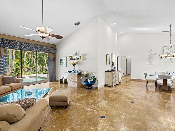 LOCATION! Remodeled home in desirable central Boca Raton, The Colonnade. 4 bedrooms 3 full bath split plan offers a modern lifestyle.Soaring ceilings, travertine flooring throughout main areas, large windows that allow an abundance of natural light. Large open kitchen w/ cook island, granite counters, custom wood cabinetry. Grand primary suite offers large walk in closets, his/ her custom wood vanities, walk in shower & jacuzzi bath tub. Picturesque private backyard with tropical lush landscaping and artificial turf. Extended paver patio with large pool for the ultimate Florida lifestyle. The community offers a beautiful park setting with lake views, tennis courts, play ground area, basketball courts, walking path & work out area. This house is a must see in central Boca!