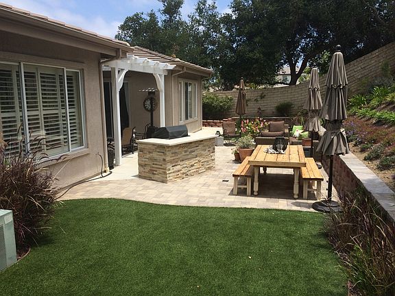 Click the 3D virtual tour and virtually walk-through the this beautiful property! Secluded single-story in Dos Vientos. This Treasures home has 4 beds (1 configured as an office), 2.5 baths, all tucked at the end of a family friendly cul-de-sac. Beautiful upgraded kitchen w/oversized island w/ quartz counter, upgraded stainless steel appliances, granite kitchen counters, & breakfast nook. Additional upgrades include gorgeous European oak wood floors, built in family room entertainment center, ceiling fans, & plantation shutters. Master suite opens to a backyard courtyard w/ low maintenance pavers, high-end artificial turf, stacked stone built-in BBQ, & drought-tolerant landscaping. Property also has indoor laundry room, 3-car attached garage with plenty of storage, & easy access to parks and wonderful schools. This one is not to be missed! Come see today!