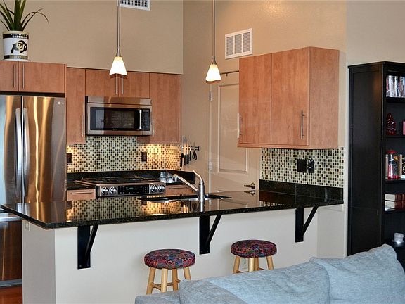 Fabulous one bedroom condo in North Boulder. Top floor unit with lots of sunlight, private balcony and spectacular views of the foothills and flatirons. Stainless appliances, 10 ft ceilings, attached garage. Large bedroom with 2 closets. Water heater and refrigerator recently replaced. Low $ HOA! Amante Coffee, Bacco, Protos, Papusas, Bank, Gym, Boulder Cycle Sport, & more just steps from your door. Active Urban Lifestyle, walk or ride to hiking & biking trails or take the "Skip" to CU & Pearl St. Village at Uptown is your gateway to the Boulder lifestyle!