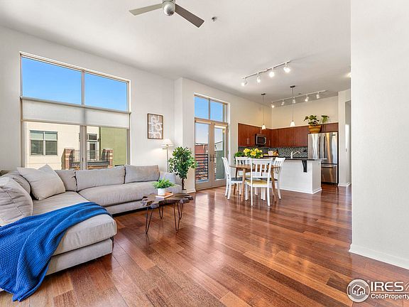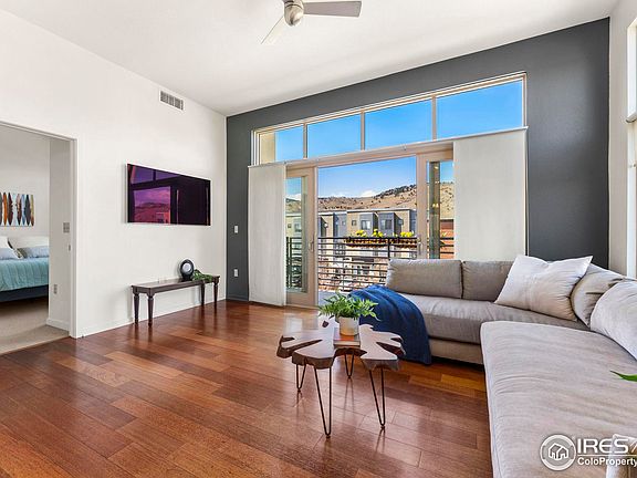 Sun-drenched and joyful living with sweeping mountain views promises to delight and inspire you in any season. Welcome home to your Boulder dream. This modern corner unit penthouse perches brilliantly above it all, offering turn-key living in a secured building. Embrace wide open spaces with soaring tall ceilings and large windows in every room. Indoor-outdoor living is seamless with stunning foothill views from two gracious balconies. Intelligent layout is designed to maximize space and privacy. Each bedroom boasts its own gleaming ensuite bathroom. The modern chef's kitchen that flows into the open living room and will be a favorite space to gather. Don't miss the 1 car garage that connects directly into the interior shared space: room for all your toys and easy parking protected from the elements. Enjoy all that NoBo has to offer just outside of your front door: Amante, Bacco, Moxie Bread Co, Bellota, Spruce Confections and more! World class hiking is just moments away, Wonderland Lake and direct connection to Boulder's extensive trail systems out the door. Here you'll find the best of all worlds, urban amenities in the hip NoBo art district combined with unparalleled access to peaceful nature. Nothing to do but move in and enjoy the best Boulder life!