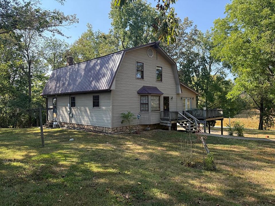 Home with a country setting. Home has 4 bedrooms 2.5 baths and basement. Nice shady 3 acre site with black walnut, pecan and persimmon trees, 2 outbuildings one is 24x30 and the other is 20x24. No restriction so perfect for small animals. Freshly painted, new carpet, upgrade to baths.