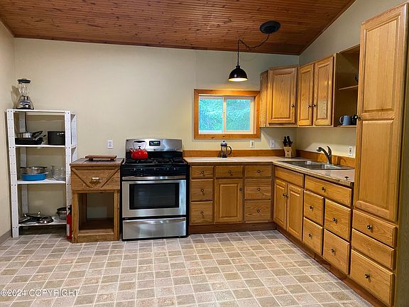 Small home in central location of Cottonwood Shores with Lake Access. This home features lots of living area with 1 bedroom and 1 full bath plus loft bedroom on a lot that offers an abundance of privacy. There is an arctic entry as well as mountain views from various windows, large laundry room with an additional 3/4 bath. The laundry are doubles as mud room off the garage with plenty of ....storage space for Alaska recreational gear! The 2-car garage currently has some temporary walls within that could easily be removed or utilized as is. Property access is a horseshoe shaped driveway as well as lots of parking area. There are two sheds for storage and/or hobby workspace. Seller is making repairs including roofing replacement.