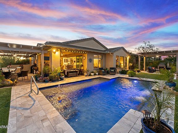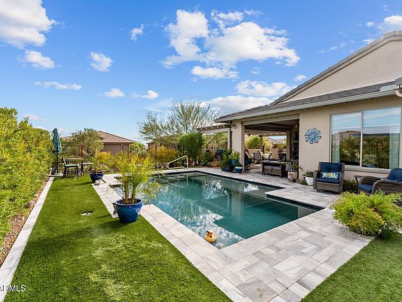 PREPARE TO BE WOW'D BY THIS HIGHLY UPGRADED NICE PLAN! Features include ie: owned Solar System, beautiful pool, fully fenced backyard w/ snake fencing, 2- Pergolas w/ lights & fans, TO ENOY THE VIEWS! Added privacy fencing & plantings, extended paver patio, fully automatic exterior shade screens for the large covered patio. 3-Car garage + built-in storage cabinets along with a garage mini-split. This is just the exterior!