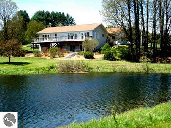 9.5 acres, Pond, Jackson Creek,and large pines forms the tranquil environment for this 4 Bedroom, 3 Bath Home. Full finished walkout LL. Attached 2 car garage , and separate POLE BUILDING.Spacious main floor laundry / work center. Paved and concrete drive, mature landscaping. Quality construction. Close to the village of kingsley, and 20 min to Traverse. Additional acreage available.