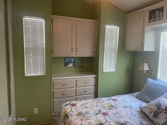 Rincon Country West is a 55+ resort community with a swimming pool, 2 hot tubs, 2 weight rooms, over 100 clubs & activities including: hiking, biking, golf, tennis, pickleball, computer club, book club, woodworking, a lapidary for making jewelry, billiards, sewing, bingo, & a variety of card games. It is a gated community. Located in the non-pet section. Trex deck. AZ room with porch. U-shaped kitchen with skylight. New kitchen window 2024. Laminate flooring. Full bathroom. New bathroom sink 2024. PEX plumbing. Propane heat/ stove/oven. Portable closet in the AZ room & a trundle bed. Nice peaceful location & close to the main complex & laundromat. New roof 2023. 10 x 10 shed. Parking for two vehicles. Call owner directly at or. Land lease is $8100/year pd in Oct.