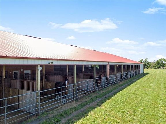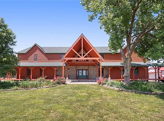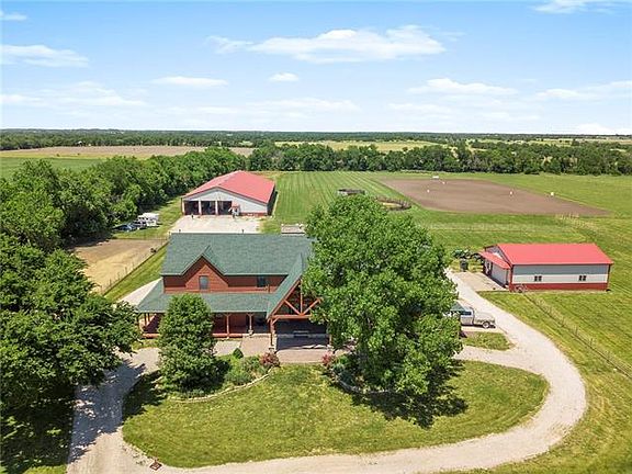 Welcome to this beautiful country estate located less than 20 minutes from Olathe on 30 acres with a spacious house just under 6,000 sq ft. The estate boasts a grand front door entry, just under 30 ft ceilings in the great room, large master suite on main floor, and great staircase to the second level. The property has many updates and upgrades please see the supplements for detail. This estate has a 17-horse stable barn with a tack room and lab, paired with an outdoor riding arena and extra wide track to back in your trailer, and an outbuilding for extra storage. Bring your cattle, horses, or other animals and enjoy the beautiful country style living.