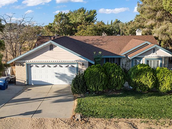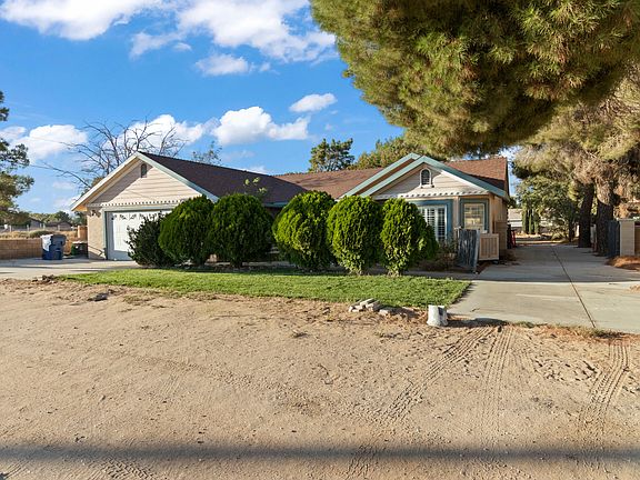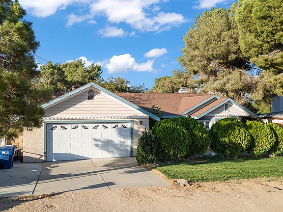 This charming property features a spacious lot with ample outdoor space, including mature trees and a detached storage shed. Inside, the kitchen offers a warm, rustic design with tiled countertops and backsplash, along with ample cabinetry and a cozy layout perfect for cooking. The living spaces are bright and welcoming, with laminate flooring and plenty of natural light. The property also includes a two-car garage and is surrounded by desert landscaping, offering both privacy and a serene environment. Perfect for those seeking a comfortable home with outdoor potential!