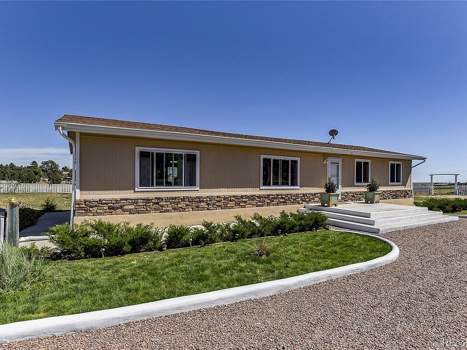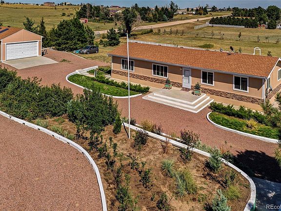 Welcome home to your newly renovated homestead with stunning panoramic views of Pikes Peak and the front range! Your future Home sitting on almost 5 beautiful acres! This property is completely fenced and is equipped with 3 large gates for large delivery trucks and a private gate for visitors. The property has been completely renovated inside and outside! As you enter onto the property you will notice the 4 beautiful custom retaining walls and custom drive way that leads to 8 additional outdoor parking spaces in addition to the 2 car garage. Park your boat, RV camper with out a care. There is no HOAs! You will be amazed at all the trees, bushes and shrubs that have been planted to make this property feel like an oasis. As you walk up to your new home you will notice, the home has custom stone work done on the front and custom large patio and sidewalk. The interior has been updated, painted all new floors, brand new Stainless Steel Appliances, Barn door, ceiling fans, updated bathrooms, new Furnace, Hot water heater and so much more! As you head out side to the back yard on your new deck, you will see a charming little green house, filled with tomatoes, green onions, arugula and so much more. Anyone with a green thumb will love the endless possibilities. There is also a chicken coop with plenty of chickens that room free and lay fresh delicious eggs. This property still has plenty of room for your personal touches, build stables, a pull barn, workshop or a larger home. This property is perfect for anyone who wants a little piece of land and some privacy. Come see what this homes has in store for you.