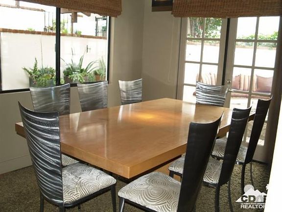 Palm Desert has it all! Whether you are interested in entertainment, dining, sports, shopping, or gaming, Palm desert is at the heart of it. This magnificent condo is just steps off El Paseo Dr (the Rodeo Dr. of the desert) with a multitude of restaurants,art galleries and a short walk to Westfield Mall. Minutes are Aqua Caliente Resort and Casino, the McCallum Theatre, Trader Joes, Bristol Farms, Indian Wells Tennis Gardens, and The Living Desert. This luxurious upgraded condo has slate stone flooring in common areas, birds-eye maple cabinetry & limestone counters in kitchen. Upgraded stainless appliances including 2 Sub-Zero wine refrigerators. Boasts two master bedrooms, walk-in closets in both masters with custom built-in storage. Private patio offers mountain views & has a sculpted large granite rock fire pit with built-in seating & stainless BBQ. Cobblestone paver patios & driveway. 2 car garage with epoxy floor & quality custom built in storage. Appointment only call agent.