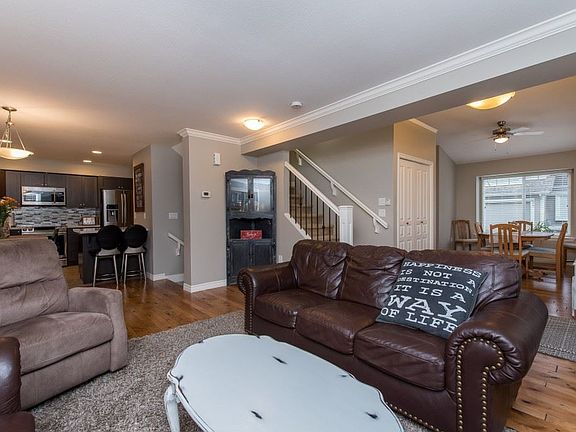 Popular Shawnigan Place in Garrison Crossing close to schools and all amenities! This 2360 sq ft END UNIT with double garage offers the lifestyle you deserve! 4 bedrooms AND 4 bathrooms. Main floor living area has HARDWOOD and TILE floors. Kitchen has NEWER QUARTZ counters and backsplash, stainless appliances. Spacious living and dining room for entertaining. Gas fireplace. Large master bedroom with 5 pc ensuite and large walk-in closet. Updates added to 3 of the bathrooms recently. Central A/C unit added by current owners. The basement is fully finished with a SPACIOUS FAMILY/MEDIA ROOM, and guest bedroom. It's a full package in the perfect location, just waiting for you!