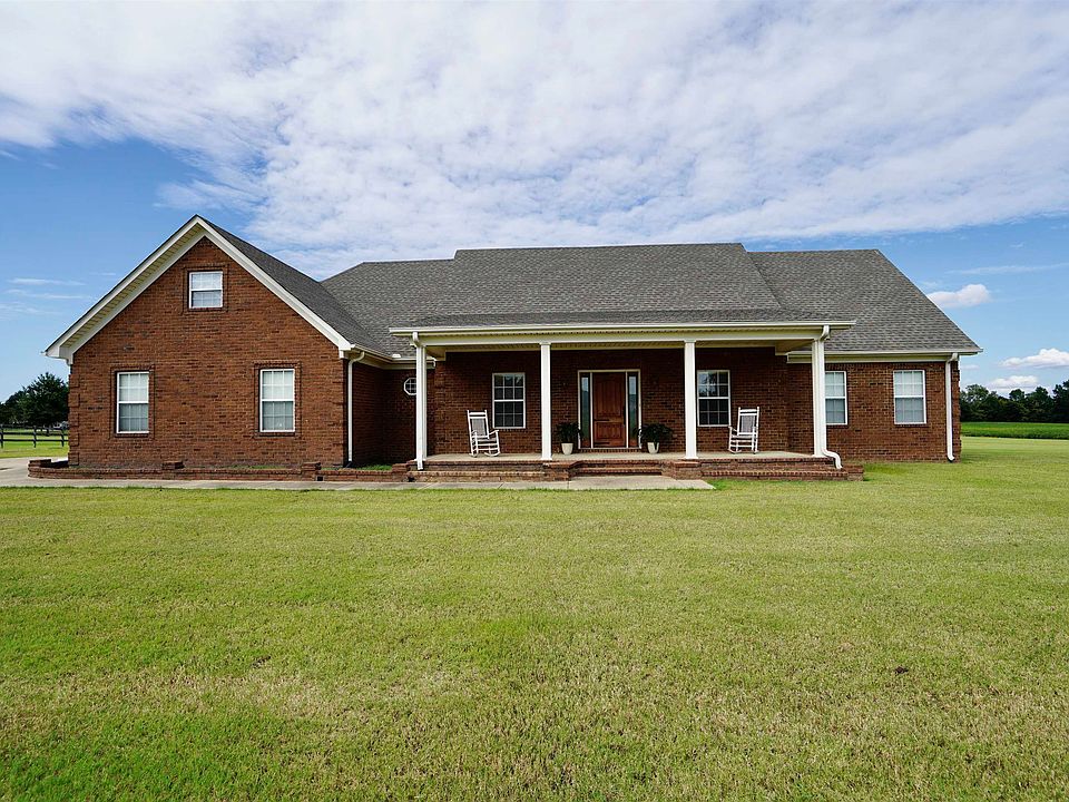 WIDE OPEN SPACES ! Follow the Bradford pear lined drive to this ranch style brick 3 bedroom 2 1/2 bath home w/ covered front & rear porches sitting on 11 acres! Split floor plan, stainless appliances, gas cooking, roof less than 5 yrs old. .Kitchen, dining & den are open concept great for entertaining. All bedrooms down. Well maintained lawn goes on and on ! So bring your dreams to this awesome blank slate before its too late ! Call today for your private showing!