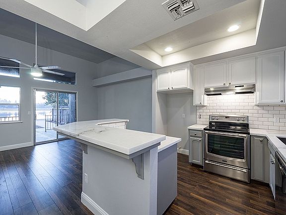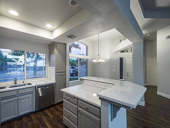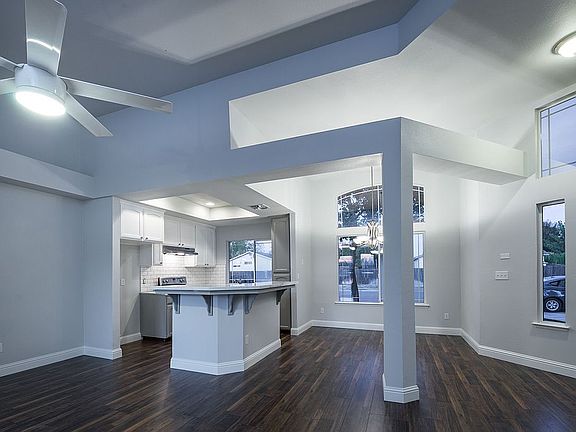 Just updated and upgraded 3 Bed,2 Bath. The floor plan features an open living area with Living Room, Dining Space, and Island Kitchen complete with breakfast-entertainment bar. Separated Laundry room. Full Master Suite with high ceiling, multiple windows, walk in closet and en-suite bath with dual sinks. Updating includes brand new plank style laminate and new carpeting throughout, new doors, new fixtures, new interior and exterior paint, new hardware, new lighting fixtures and ceiling fans. Upgrades include Quartz counter tops in the Kitchen and Baths, custom tile Bath floors and tub surrounds, new wide baseboards, subway tile Kitchen back splash, and new stainless steel appliances. Both baths have tubs. Covered porch and covered patio. The home backs up to a large water retention pond, and faces a side fence across the street for an increased feeling of privacy and Great Sunsets! Convenient location to elementary school, HWY 99 access, shopping, food, services and a regional park.