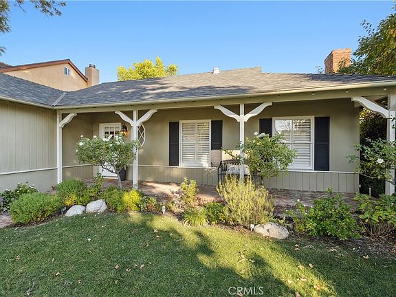 Charming single story Traditional with storybook inspired curb appeal in the heart of Sherman Oaks. Shady trees, lush landscaping, rose bushes and meandering brick walkway leads to this warm and inviting 3 bedroom & 1.75 pool home with 1,278 square feet of living space. Formal entry opens to light and bright living room with hardwood floors, fireplace with mosaic tiles, plantation shutters, recessed lights and quaint dining area. Adjacent to dining area is the sun filled kitchen with garden window, tile counter tops, stainless steel Frigidaire appliances, and breakfast nook with sitting area that overlooks the backyard. Two bedrooms with plantation shutters and a hallway bathroom with endearing vintage tile counter tops, tub and shower stall. Third bedroom could be used as a convertible den and features solar skylight, recessed lights and sliding glass doors that leads to the backyard. Third bedroom is connected to the second bathroom that has been updated with granite countertops and an oversized shower stall. Immaculate backyard with sparkling pool, water fountain features, covered wood patio with cozy sitting area for entertaining, tall matures trees for added privacy and a detached two car garage with separate storage closets. A wonderful opportunity to own a delightful home on a beautiful tree lined street.