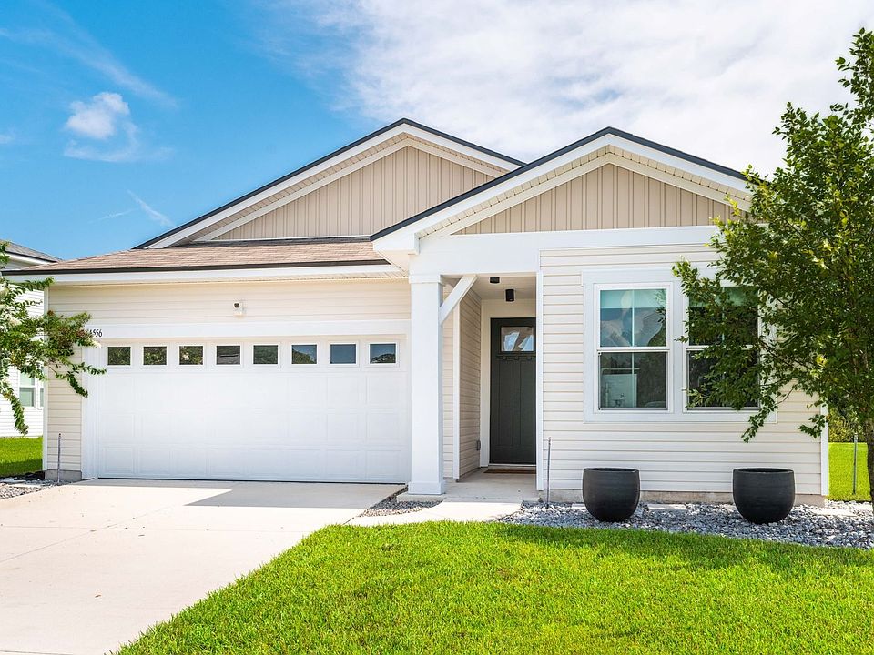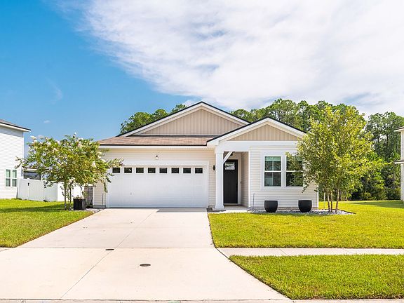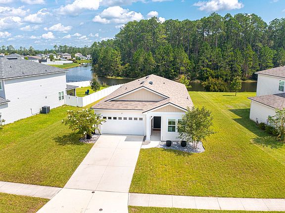 Step into this stunning 4-bedroom, 3-bath home featuring a spacious open-concept floor plan and upscale finishes throughout. The gourmet kitchen is a chef's dream with an oversized island, sleek black quartz countertops, GE Profile appliances (including range with air fryer, hood, refrigerator, and dishwasher), and a cleverly hidden microwave in the pantry. Enjoy thoughtful touches like a deep quartz sink with touch faucet, water softener, and reverse osmosis system. The home boasts 17" tile flooring, custom blinds with motorized shades, and raised vanities for added comfort and style. The primary suite offers a luxurious retreat with a beautifully designed bath, custom closet organization, and a sliding barn door for added character. A third bedroom with a private bath makes an ideal guest suite or space for multi-generational living. Step outside to enjoy peaceful pond views, and take advantage of the family-friendly community amenities and top-rated schools nearby. Conveniently located close to Cecil Field and NAS Jacksonville.